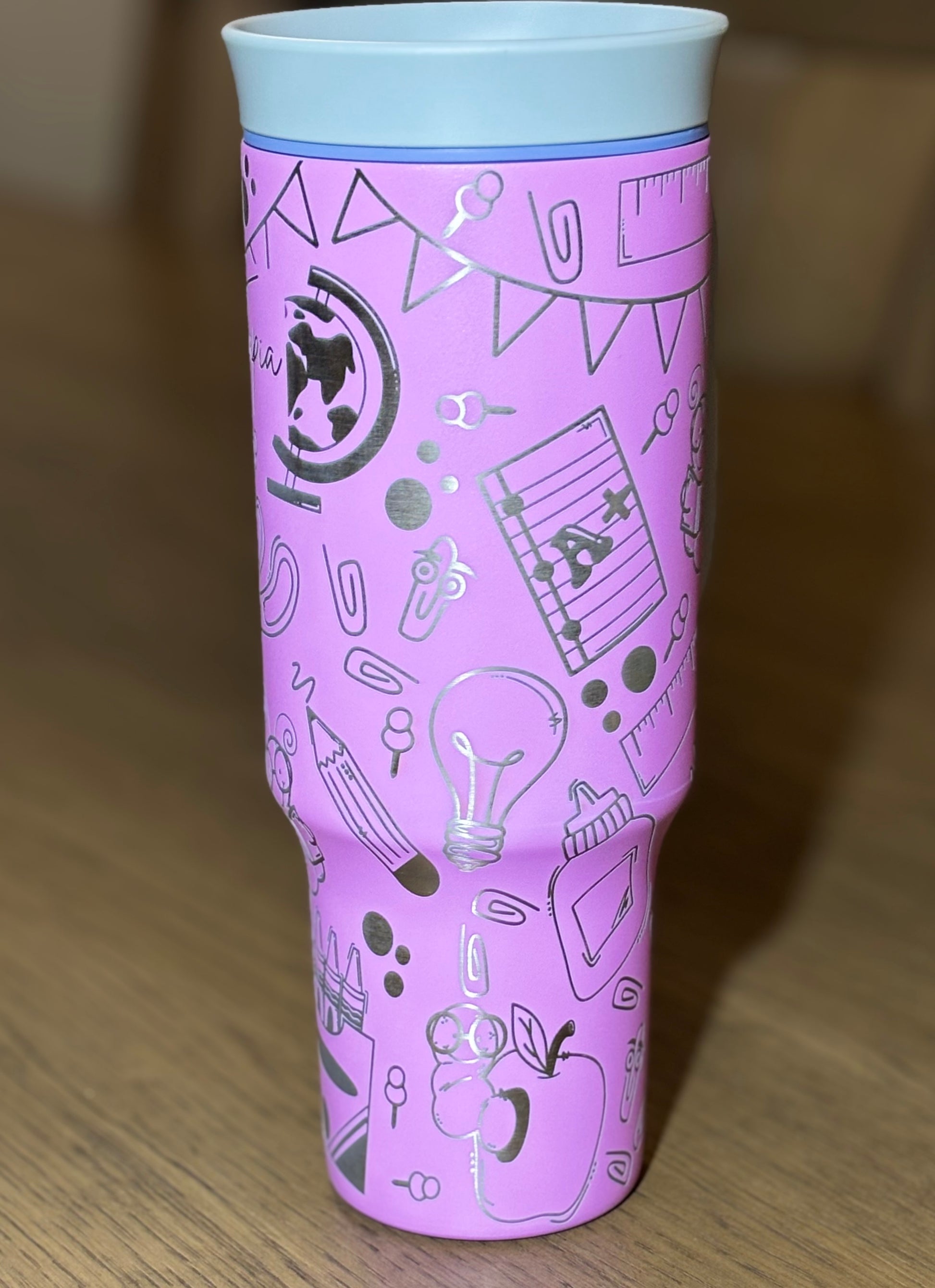 Examples! Bring your own tumbler and watch us transform it with custom engraving—no design is too wild or unique! Even if you don’t see your style here, we can still make it happen. Just send your tumbler for approval (local customers only or customer paid shipping), and we’ll create a one-of-a-kind masterpiece that’s all you. The possibilities? Endless and totally fun!